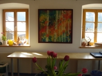 Das Atelier war ursprünglich ein Malort, an dem ich mich der schon seit vielen Jahren leidenschaftlich betriebenen Seidenmalerei widmete,