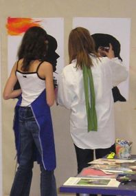 Zur eigenen Entfalltung steht eine reichhaltige Palette an Malmaterialien und Anregungen zur Verfügung, um den eigenen bildnerischen Ausdruck umzusetzen.