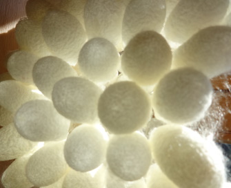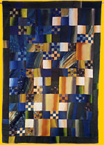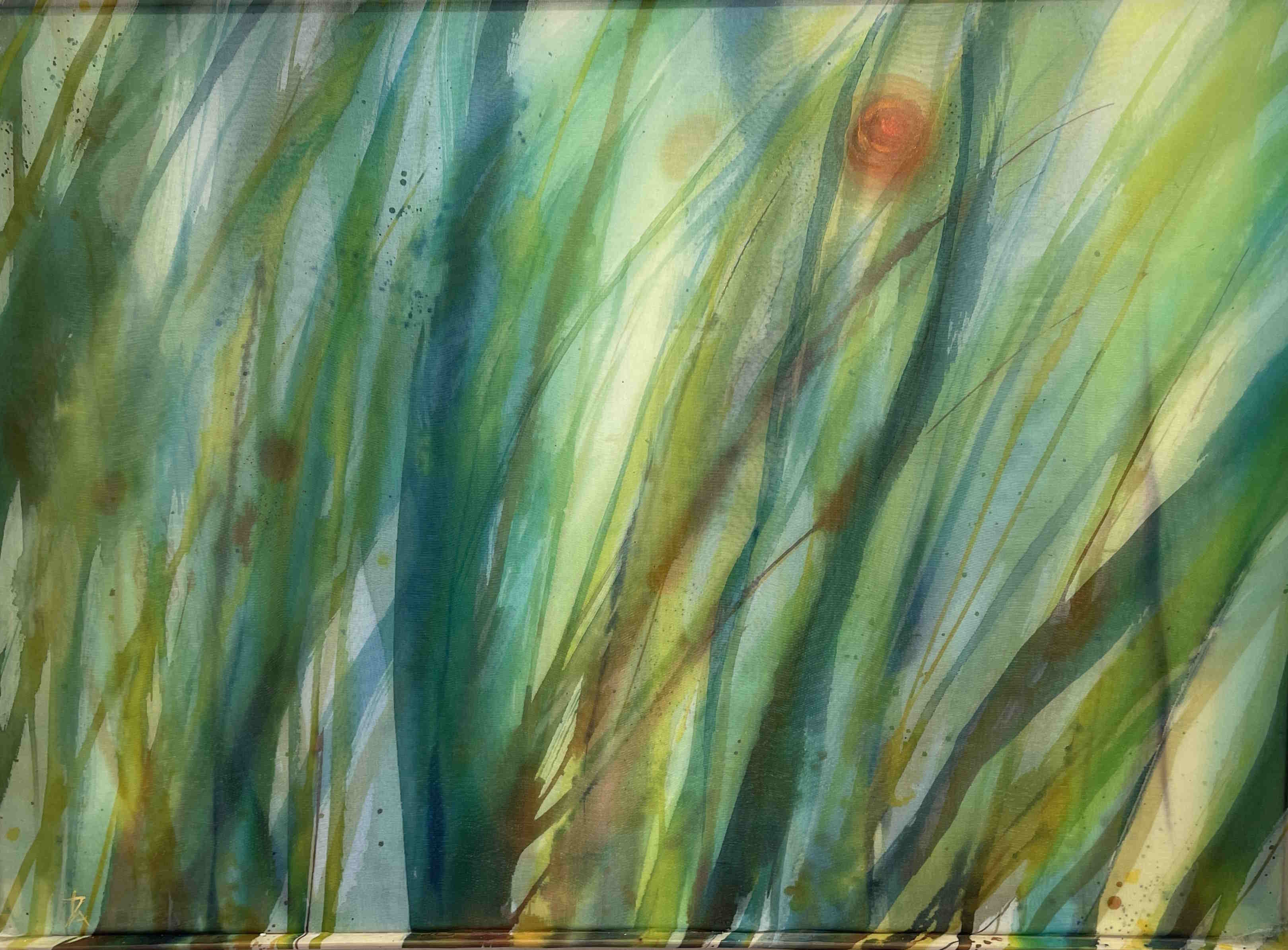 Meine eigene künstlerische Arbeit beschäftigt sich vorrangig mit dem Material Seide, die ich bemale, bedrucke, reiße, nähe, übereinander lege, klebe und vieles mehr. Und dies in Kombination mit verschiedensten anderen Materialien.